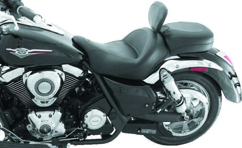 Kawasaki Vulcan 1700 Classic One-Piece Motorcycle Seat - Mustang Motorcycle - Touring with Driver Backrest - Black - `09-`13