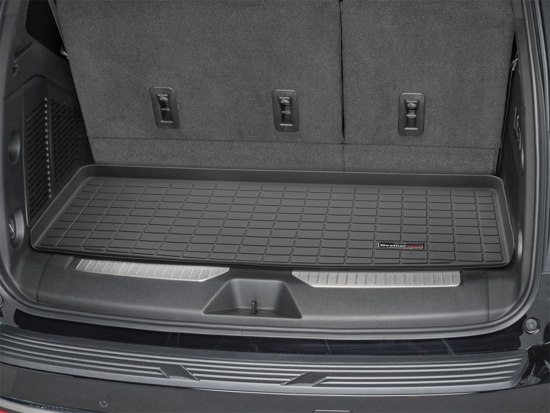 WeatherTech Cargo Liners provide complete trunk - cargo area protection. Our cargo liners are computer designed to fit your vehicle and have a raised lip to keep spills, dirt and grease off your vehicles interior, protecting your carpeting from normal wear and tear. Made from a proprietary custom blended TPO (thermopolyolefin) that is not only wear resistant, but also remains flexible under temperature extremes. The WeatherTech Cargo Liner features a textured finish which helps to keep cargo from shifting, and is perfect for hauling just about anything. Available in three colors, Black, Tan or Grey. Available for car trunks, SUVs and minivans. WeatherTech Bumper Protector is a great addition to your Cargo Liner to help protect the surface of your vehicle's bumper from dings and scratches when loading or unloading personal items or pets. The Bumper Protector is made from highly durable vinyl fabric that easily snaps onto your Cargo Liner by stainless, rust resistant snaps. The WeatherTech Bumper Protector comes in two sizes: 30 in. long x 30 in. wide and 30 in. long x 40 in. wide. Bumper Protectors are vehicle specific so the correct size option will be shown for your vehicle.. WeatherTech 2021-2021 Chevrolet Tahoe (Behind 3rd Row Seating) Cargo Liners - Black. Raised Lip To Keep Spills/Dirt/Grease Off Interior. Provides Complete Trunk/Cargo Area Protection. Cargo Liner; Black; Behind 3rd Row Seating;. Textured Finish Keeps Cargo From Shifting. Made From Proprietary Custom Blended TPO. Computer Designed To Fit Your Vehicle. Flexible Under Extreme Temperatures. Quick And Easy Cleanup. Cargo Floor Liner. Easy Installation. Cargo Area Liner. Cargo Liner