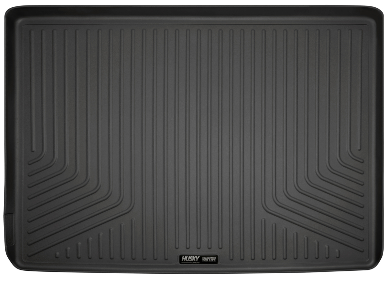 The original all-weather liner is ready, come hell or hot coffee. The Weatherbeater?s construction is a no-slip zone with zero edge curl, and its Stay Put Nibs keep it firmly anchored underfoot. It stands up to chemicals like gas, oil and battery acid, and stays tough and flexible, even under extreme temperatures. Its laser-scanned, FormFit Design? gives your truck, van or SUV an ultra-clean look with easy cleanup to match, while its patented, FormFit Edge? keeps spills contained, carpets unstained. It?s unbeatable Husky protection for life, warrantied the same. Proudly made in the USA.. WeatherBeater(TM) Liners offer protection that extends all the way to your rear seats. So go ahead, lift the seats and leave them up, load after load. Husky's got your floors, and your back, no matter what the road brings your way.. Put Nature firmly in its place. The rugged and sporty WeatherBeater Floor Liners perfectly conform to the contours of your ride and offer un-beatable carpet protection for whatever nature hurls at you.. Our patented FormFit Design(TM) process gives you a glove-like, laser-tight fit to your make and model. Floorboards are 3D scanned to precisely match the contours of your vehicle.. When we say it's "guaranteed for life" that is exactly what we mean. No hassles, no guff. If you have a problem with this or any Husky product, we'll replace it.. Our patented FormFit Edge(TM) features a raised ridge that runs along the door jam, protecting your truck, van, or SUV from all manner of muck.. Over vinyl or carpet, our StayPut(TM) Cleats firmly lock to your factory anchors. It's rock-steady stability underfoot, only by Husky.. Sporty, rugged, and built for a lifetime of non-stop abuse. Put unbeatable all-weather toughness to work on your floor.. Husky Liners 2015 Chev/GM Suburban/Yukon XL WeatherBeater Black Rear Cargo Liner to Back Third Seat. Easy to install, remove, and clean. Just yank it out, hose it down and carry on.. Tough And Durable Rubberized Material Resistant To Most Chemicals. Installs Easily In Seconds With No Screws Bolts Fasteners. Custom Fit Designed To Specifically Fit Your Vehicle. Prevents Stains And Soiling Of Your Carpeted Areas. Weatherbeater Cargo Liner Behind 3rd Seat Black. Weatherbeater - Cargo Liner Behind 3rd Seat. Guaranteed Not To Crack Or Break. WB CARGO LINER BEHIND 3RD SEAT. Husky Liners WB Cargo Liner. WEATHERBEATER FLOOR LINERS. Proudly made in the USA.. Resists Most Chemicals. WeatherBeater Series. Cargo Floor Liner. Non-Slip Surface. Minimal Shifting. FLOOR COVERINGS. Cargo Liner