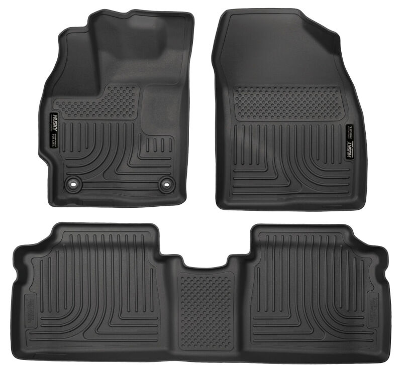 The original all-weather liner is ready, come hell or hot coffee. The Weatherbeater?s construction is a no-slip zone with zero edge curl, and its Stay Put Nibs keep it firmly anchored underfoot. It stands up to chemicals like gas, oil and battery acid, and stays tough and flexible, even under extreme temperatures. Its laser-scanned, FormFit Design? gives your truck, van or SUV an ultra-clean look with easy cleanup to match, while its patented, FormFit Edge? keeps spills contained, carpets unstained. It?s unbeatable Husky protection for life, warrantied the same. Proudly made in the USA.. WeatherBeater(TM) Liners offer protection that extends all the way to your rear seats. So go ahead, lift the seats and leave them up, load after load. Husky's got your floors, and your back, no matter what the road brings your way.. Put Nature firmly in its place. The rugged and sporty WeatherBeater Floor Liners perfectly conform to the contours of your ride and offer un-beatable carpet protection for whatever nature hurls at you.. Our patented FormFit Design(TM) process gives you a glove-like, laser-tight fit to your make and model. Floorboards are 3D scanned to precisely match the contours of your vehicle.. When we say it's "guaranteed for life" that is exactly what we mean. No hassles, no guff. If you have a problem with this or any Husky product, we'll replace it.. Our patented FormFit Edge(TM) features a raised ridge that runs along the door jam, protecting your truck, van, or SUV from all manner of muck.. Over vinyl or carpet, our StayPut(TM) Cleats firmly lock to your factory anchors. It's rock-steady stability underfoot, only by Husky.. Sporty, rugged, and built for a lifetime of non-stop abuse. Put unbeatable all-weather toughness to work on your floor.. Husky Liners 2015 Toyota Prius WeatherBeater Black Front & 2nd Seat Floor Liners. Easy to install, remove, and clean. Just yank it out, hose it down and carry on.. Tough And Durable Rubberized Material Resistant To Most Chemicals. Installs Easily In Seconds With No Screws Bolts Fasteners. Custom Fit Designed To Specifically Fit Your Vehicle. Prevents Stains And Soiling Of Your Carpeted Areas. Weatherbeater - Front & 2nd Seat Floor Liners. Husky Liners WB Front & 2nd Floor Liners. front and Second Seat Combo Set; Black. Guaranteed Not To Crack Or Break. WEATHERBEATER FLOOR LINERS. WB FR/2ND SEAT FLOOR LINER. Proudly made in the USA.. Resists Most Chemicals. WeatherBeater Series. Non-Slip Surface. Minimal Shifting. FLOOR COVERINGS. Floor Liners. Floor Liner