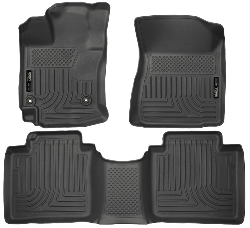 Toyota Venza Floor Liners - Front + Rear - Husky Liners - WeatherBeater - Black - 2015. Heavy-duty, model-specific floor liners designed to protect the front and rear footwells of your 2015 Venza from mud, spills, and road grime.