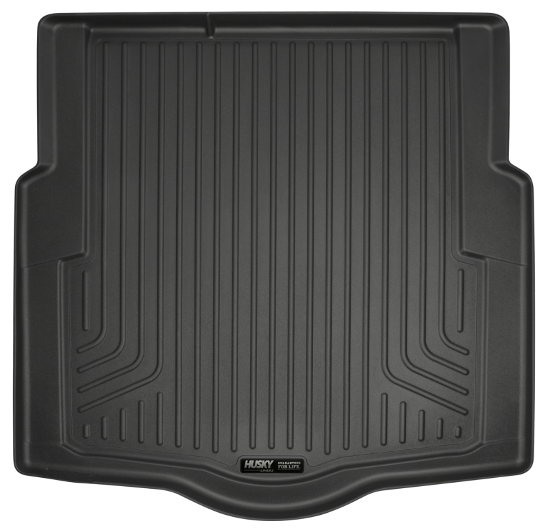 The original all-weather liner is ready, come hell or hot coffee. The Weatherbeater?s construction is a no-slip zone with zero edge curl, and its Stay Put Nibs keep it firmly anchored underfoot. It stands up to chemicals like gas, oil and battery acid, and stays tough and flexible, even under extreme temperatures. Its laser-scanned, FormFit Design? gives your truck, van or SUV an ultra-clean look with easy cleanup to match, while its patented, FormFit Edge? keeps spills contained, carpets unstained. It?s unbeatable Husky protection for life, warrantied the same. Proudly made in the USA.. WeatherBeater(TM) Liners offer protection that extends all the way to your rear seats. So go ahead, lift the seats and leave them up, load after load. Husky's got your floors, and your back, no matter what the road brings your way.. Put Nature firmly in its place. The rugged and sporty WeatherBeater Floor Liners perfectly conform to the contours of your ride and offer un-beatable carpet protection for whatever nature hurls at you.. Our patented FormFit Design(TM) process gives you a glove-like, laser-tight fit to your make and model. Floorboards are 3D scanned to precisely match the contours of your vehicle.. When we say it's "guaranteed for life" that is exactly what we mean. No hassles, no guff. If you have a problem with this or any Husky product, we'll replace it.. Our patented FormFit Edge(TM) features a raised ridge that runs along the door jam, protecting your truck, van, or SUV from all manner of muck.. Over vinyl or carpet, our StayPut(TM) Cleats firmly lock to your factory anchors. It's rock-steady stability underfoot, only by Husky.. Sporty, rugged, and built for a lifetime of non-stop abuse. Put unbeatable all-weather toughness to work on your floor.. Easy to install, remove, and clean. Just yank it out, hose it down and carry on.. Husky Liners 2016-2017 Chevrolet Cruze WeatherBeater Cargo Liner - Black. Tough And Durable Rubberized Material Resistant To Most Chemicals. Installs Easily In Seconds With No Screws Bolts Fasteners. Custom Fit Designed To Specifically Fit Your Vehicle. Prevents Stains And Soiling Of Your Carpeted Areas. Easy to install, remove, and clean.. Guaranteed Not To Crack Or Break. Weatherbeater - Trunk Liner. Husky Liners WB Trunk Liner. WEATHERBEATER FLOOR LINERS. Proudly made in the USA.. Resists Most Chemicals. Weatherbeater Series. Cargo Floor Liner. Non-Slip Surface. Minimal Shifting. FLOOR COVERINGS. WB TRUNK LINER. Trunk Liner. Black