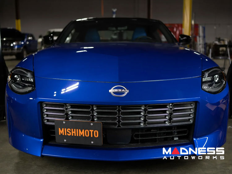 The all-new Nissan Z is undeniably a sleek showstopper. However, there's one not-so-sleek aspect – its front license plate location. Positioned right in the center of the grille, it obstructs air flow to the radiator and creates unwanted wind resistance. But don't worry about drilling holes in your new bumper! Mishimoto has the perfect solution: the Nissan Z Mishimoto license plate relocation kit!