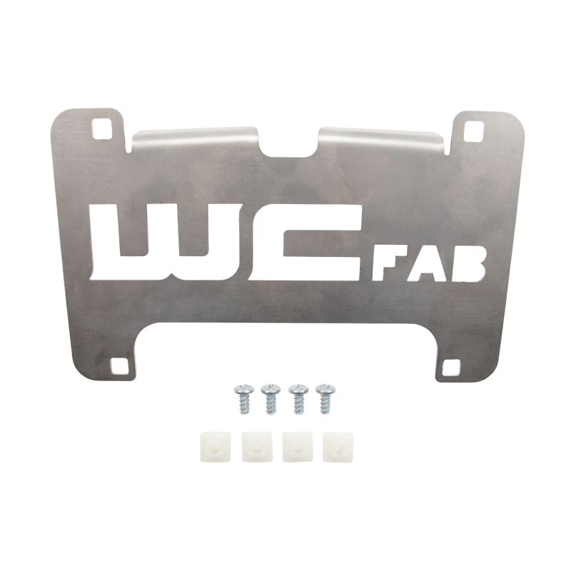 Precision laser cut and CNC bent from 16-gauge stainless steel, the Wehrli mount installs between the WCFab lower valance filler panel and the bumper using the same OEM hardware as the filler panel. Designed for durability and correct fitment, it preserves plate positioning required by states that mandate a front tag while matching the panel mounting method and hardware. Hardware for mounting the license plate is included, and the bracket is made in the USA.