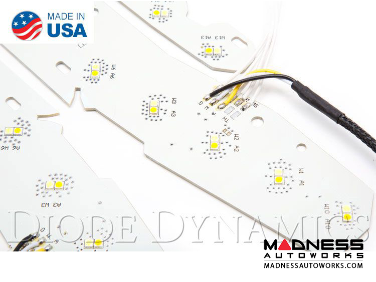 To drive the high-power LEDs safely, a new constant-current, waterproof, inductive driver is included for each set. This driver utilizes a PWM brightness control system, a Diode Dynamics exclusive. This allows for a low-power white at night, high-power white during the day, and then an amber turn signal that is even brighter! While the amber is extremely bright, we do not recommend disabling your factory turn signal.