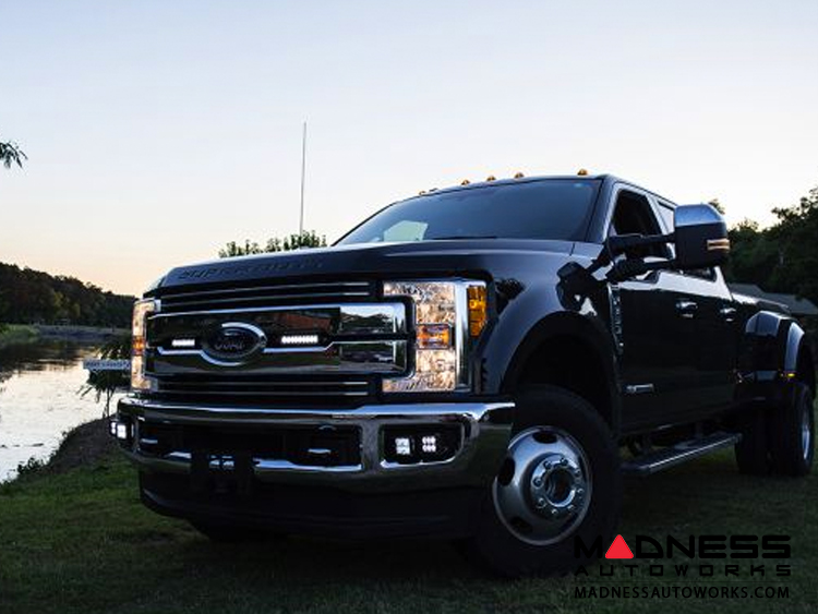 The 2017-2018 Ford Super Duty Fog Light Mount Kit allows you to mount our D-Series (D-Series) LED lights (not included) in your Super Duty OEM fog lamp locations. This kit gives your otherwise square D-Series lights a clean from-the-factory look. Made from high quality stainless steel, these adaptor plates are powdercoated black for a long-lasting finish. This kit comes with everything you need to install 2 D-Series lights (not included) in both fog light locations and is backed by RIGID Industries' limited lifetime warranty. Fits 2 D-Series.