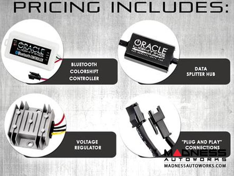 Conveniently controlled through a free smartphone App, the system features over 200 preprogrammed moving patterns as well as static color control and white mode for normal street driving.