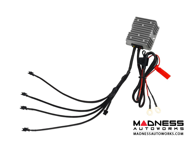 New user-friendly design is a simple plug and play design making wiring easy for even a novice. Simply connect the ring terminals to the + and - battery terminals then control your lights from the smartphone app.