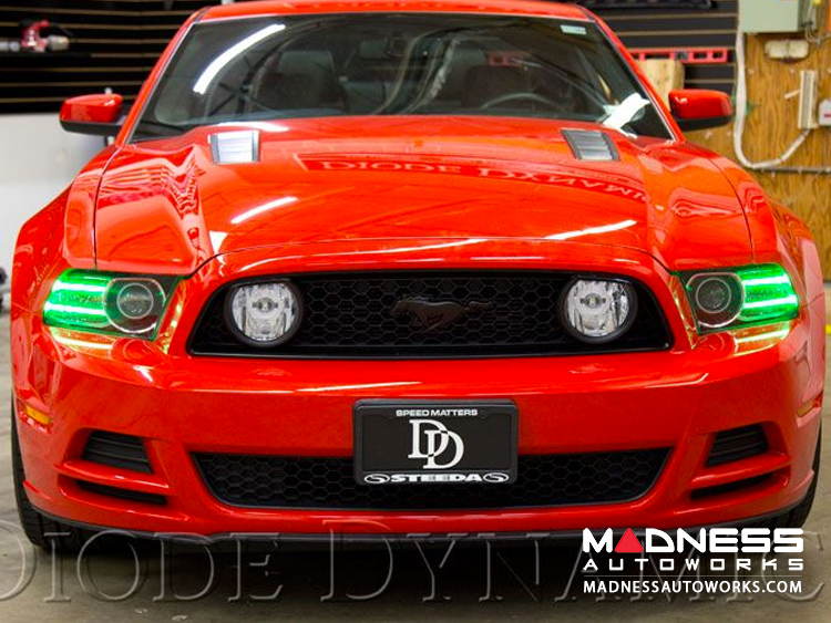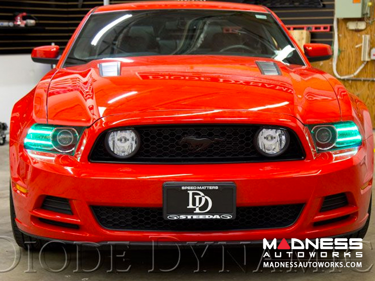 The 2013-2014 Ford Mustang has white LED accent bars in the headlights. They are illuminated by a circuit board that holds white LEDs. Our replacement LED boards utilize high-power RGBW LEDs instead! The RGB function allows for full multicolor control using any standard RGB controller, to accent the look of your Mustang and make it stand out on the road.