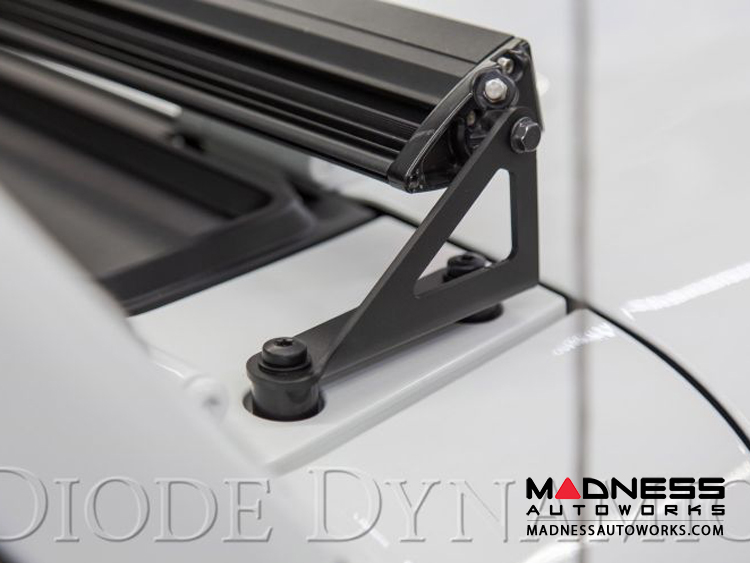 Perfect fitment. The Hood LED Light Bar Kit for the 2018-2019 Jeep Wrangler from Diode Dynamics allows you to easily mount a 50" Stage Series light bar (included) across the hood. These application-specific brackets were CAD-designed to install using factory mounting points. No cutting or drilling required! When installed along with our fully-customizable JL Wrangler Cowl Mount Brackets, you can easily mount multiple pods on either side of the 50" light bar as well.