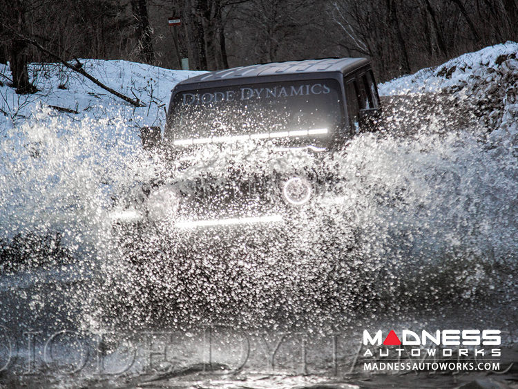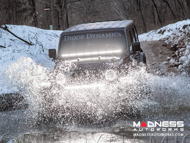 Designed for performance. You may think that you'll get lots of glare from light bouncing off the hood. However, thanks to custom-engineering TIR optics, Diode Dynamics Stage Series LED light bars shine light in a highly-functional and useful beam pattern, much more focused than older LEDs on the market. The Driving optic easily shines right over the hood, even with the low mounting position.
