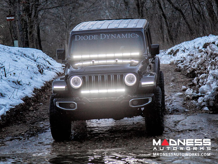 Perfect fitment. The Hood LED Light Bar Kit for the 2018-2019 Jeep Wrangler from Diode Dynamics allows you to easily mount a 50" Stage Series light bar (included) across the hood. These application-specific brackets were CAD-designed to install using factory mounting points. No cutting or drilling required! When installed along with our fully-customizable JL Wrangler Cowl Mount Brackets, you can easily mount multiple pods on either side of the 50" light bar as well.