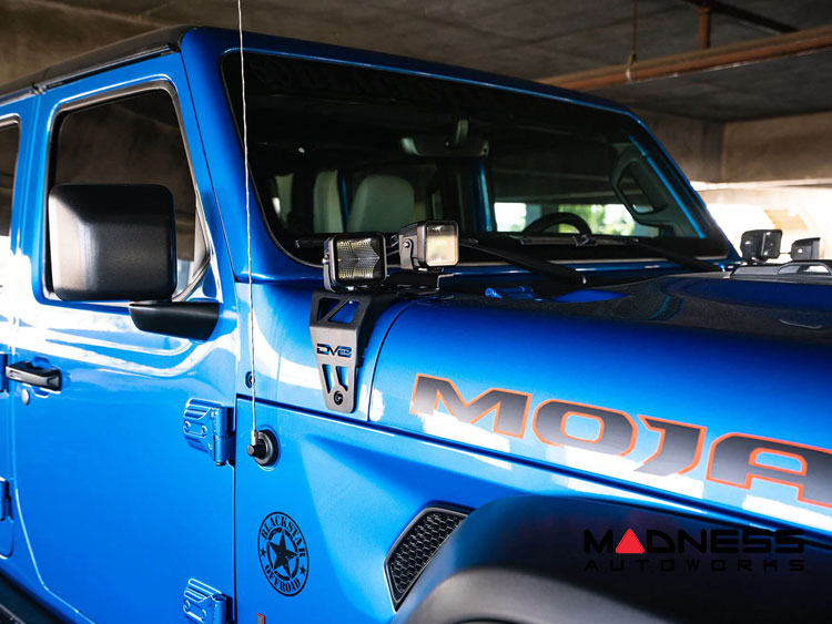 These pod light brackets install directly to factory mounting locations on the cowl/a-pillar of your Jeep Mojave or 392, in a low-profile position.