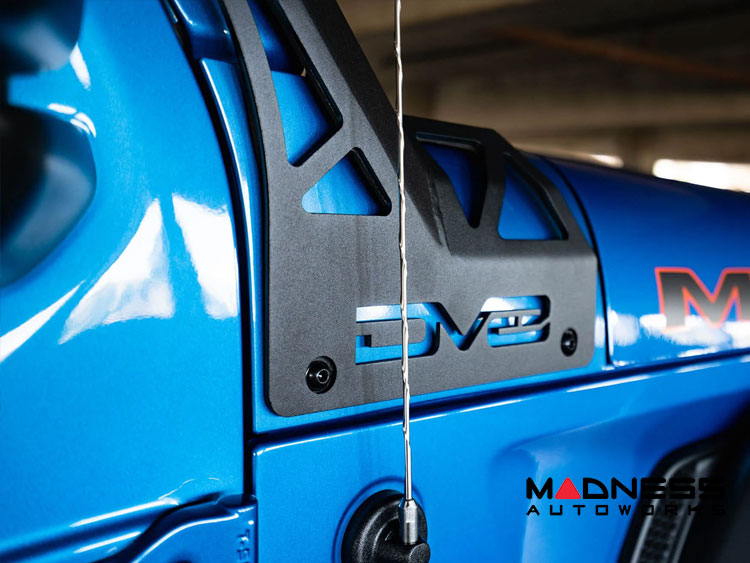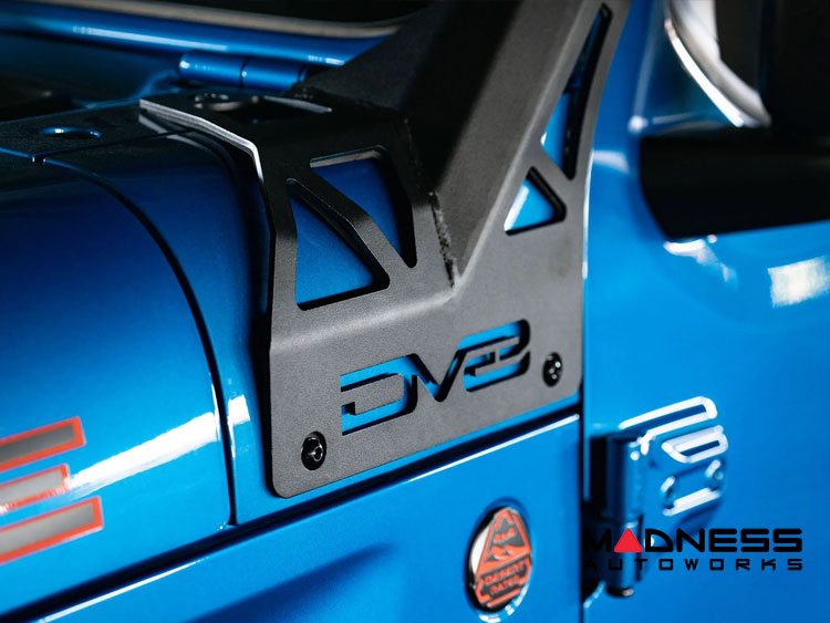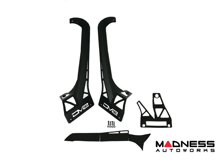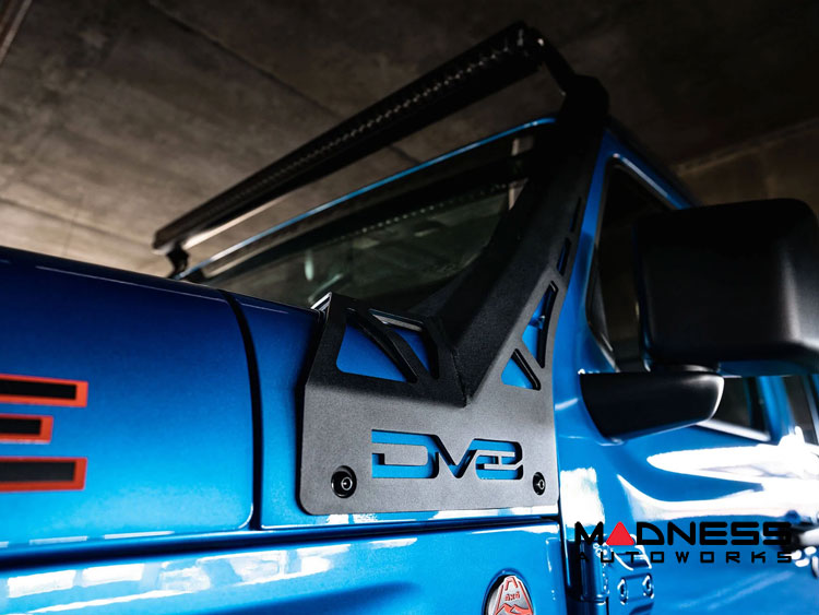 The DV8 392/Mojave Edition A-Pillar Light Bar Mount is designed to accommodate an over-windshield LED light bar, with mounting points that are 52-inches apart end to end.