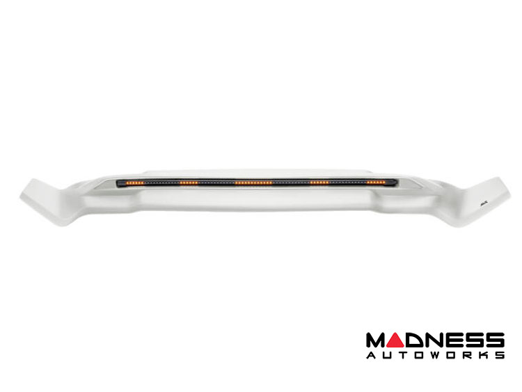It's a seamless match to your OEM paint - more than a match for anything on the road. It's the first hood shield featuring fully integrated amber LED running lamps with multiple light output sequences for added flash and function.