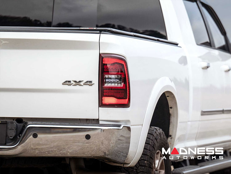 STYLE: Inspired by the modern OEM LED tail lights from the current generation Ram trucks, the XB tail lights seamlessly complement your fourth-gen Ram's rear end. Featuring parallel 3D Optics clusters illuminated with integrated TIR optics for brake and turn signals, they exude a stunning intensity day and night. Enhance the look even further with optional smoked or red outer lens options and muscular trim. These are the best-looking tail lights for your 09-18 Ram!
