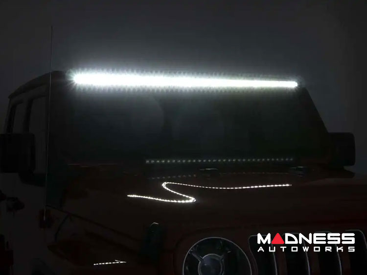 Jeep Wrangler JL Lighting Upgrade - 50in Windshield Mount - Black Series w/ White DRL - Dual Row LED