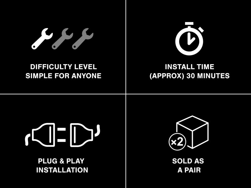 These Axial LED Headlights are designed for seamless installation, offering a plug-and-play setup that eliminates the need for cutting or modifications. In about 30 minutes, you can elevate your driving experience with lights that are not only functional but eye-catchingly stylish. Please note, if your Jeep Wrangler is originally equipped with factory LED headlights, a set of factory halogen headlight buckets (not included) will be required for installation.