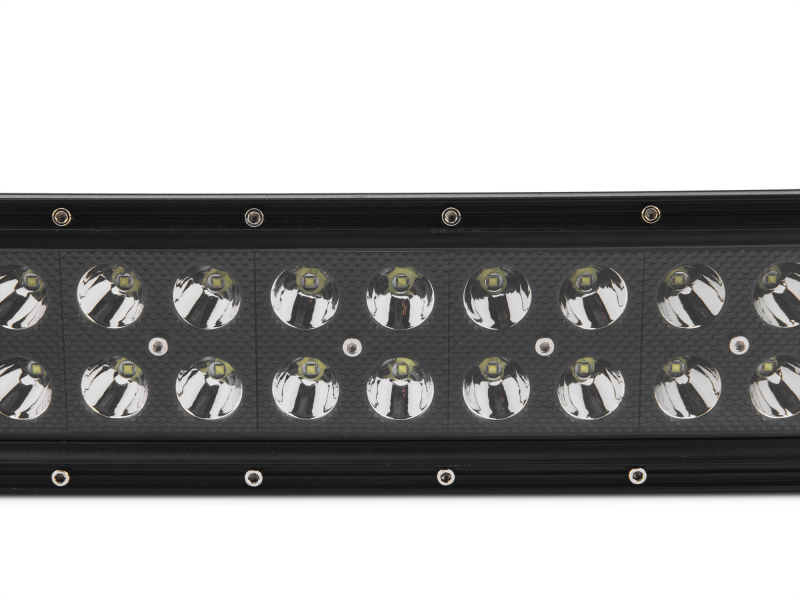 Equipped with a dual row of LED lights, this bar utilizes a flood/spot combo that strategically combines precision with breadth. The center section features a 30-degree spot that pierces the darkness, while the ends boast 60-degree flood lights to blanket your surroundings. This hybrid design ensures you won't miss a thing, regardless of the conditions. Dive into the details and discover the unparalleled luminosity offered by the 100 3w Cree LEDs, casting a pristine 6000K color temperature light that replicates the clarity of daylight.