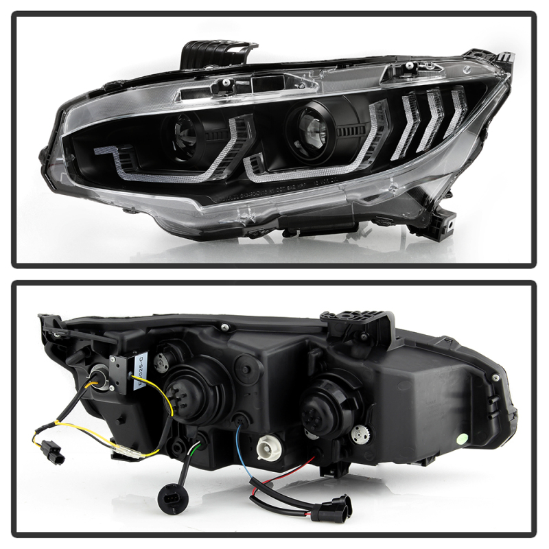 Honda Civic Headlight - SPYDER - LED + Sequential Turn Signal - Black - `16-`18