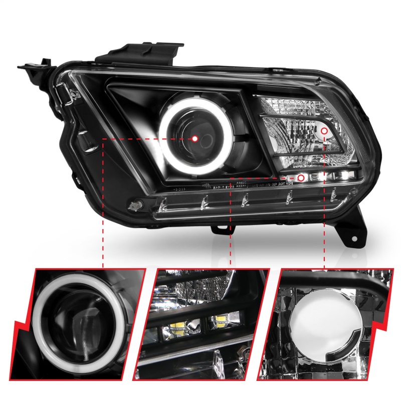 Ford Mustang Projector Headlights - ANZO - Halo Black (CCFL) - Black - `10-`14