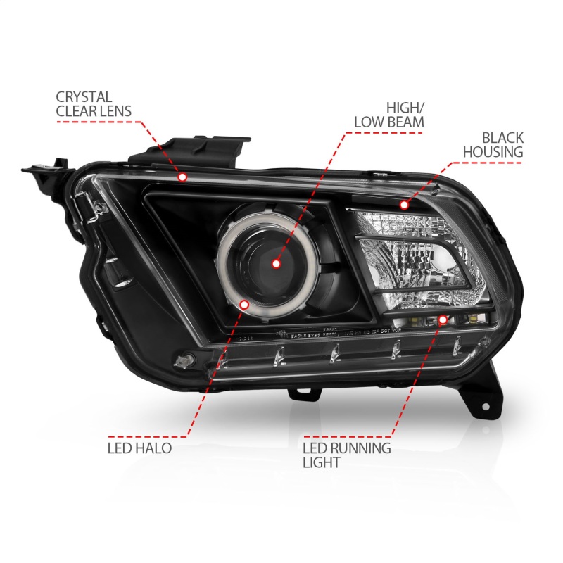 The ANZO Projector Headlights are meticulously engineered to complement your Mustang’s aesthetics while providing superior performance. Designed with a clear lens and black housing, this set is equipped with CCFL halo lights to provide a bright, clear light pattern. Specifically designed for non-HID models, these headlights offer a simple plug-and-play installation with no modifications required. Each pair undergoes rigorous testing to ensure fit and function, meeting D.O.T. compliance to S.A.E. standards. These headlights not only boost appearance but are also built to withstand various weather conditions, ensuring durability and longevity.