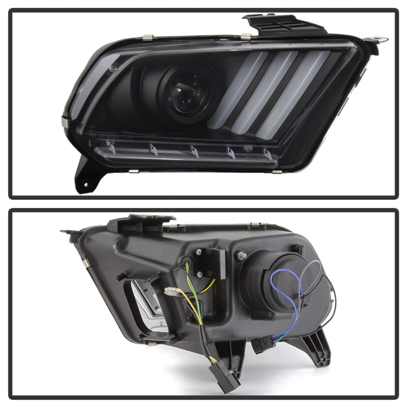 Ford Mustang Headlights - SPYDER - Light Bar Projector with LED Sequential Turn Signals, HID Only - Black - `10-`13