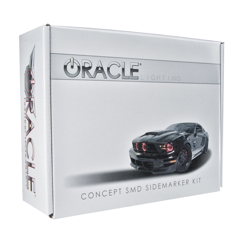 The ORACLE Lighting Ford Mustang Sidemarker Kit is a complete replacement for the stock sidemarker lights, providing an eye-catching laser-like appearance. The kit includes four tinted lenses, meticulously CAD developed to ensure OEM-quality fitment and reliability. These sidemarkers are crafted using ultrasonic welding methods, which effectively eliminate moisture issues, ensuring longevity. The bright, energy-efficient LEDs serve as an upgrade from your factory lights, improving visibility and enhancing the look of your Mustang.
