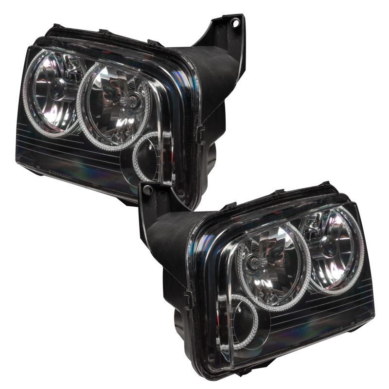 The Dodge Charger Headlight Assemblies from ORACLE Lighting are designed with convenience and performance in mind. These assemblies arrive pre-assembled, saving you time and effort as there's no need to open your existing headlights to install a halo kit. ORACLE's professional installation ensures that each headlight housing includes high-quality halo rings set into your choice of either Chrome or Black Headlight Housing. The factory-grade construction meets OEM standards, providing you with the reliability and durability you expect from a premium product. The included SMD halo technology guarantees brilliant light output, enhancing your visibility on the road while maintaining full compliance with DOT and SAE standards.