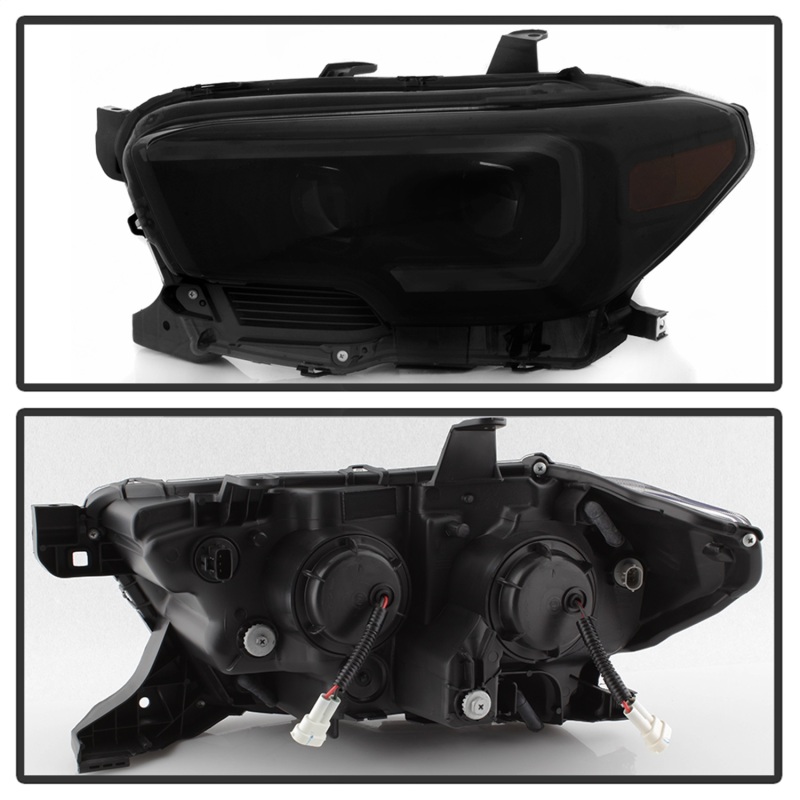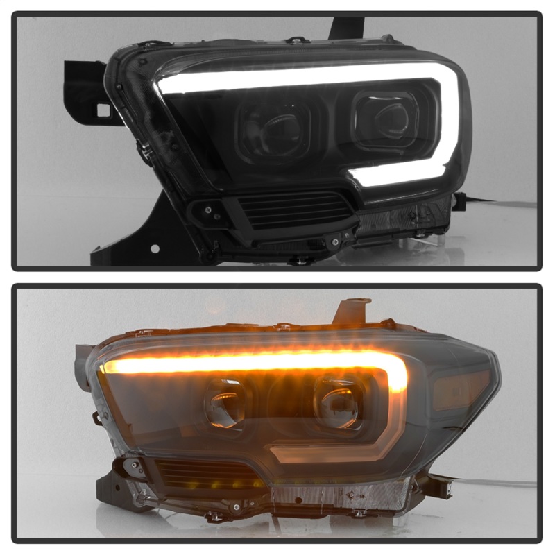 Toyota Tacoma SR Headlights - SPYDER - DRL Light Bar Projector Headlights with Sequential Turn Signal - Black Smoke - `16-`18