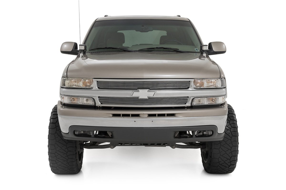 Chevrolet Silverado 1500 LED Light Kit - Ditch Mount - Rough Country - 2" Black Pair | White DRL - Black - '99-'06 is your perfect lighting solution for enhancing nighttime visibility. Designed specifically for the first-generation Chevy Silverado, these LED lights provide extra side illumination and are equipped for both on and off-road adventures.