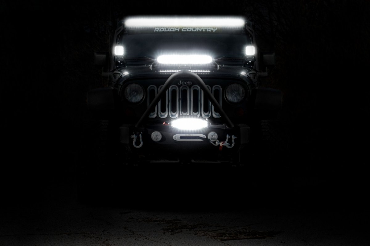 Trust the LED Light Bar - Rough Country - Dual Row | Amber DRL - Black to brighten your off-road experience. For any questions or support, please feel free to contact us directly at 512-982-9393 in Austin, Texas, or 562-981-6800 in Los Angeles, California. We offer professional installation and customization services at both locations. Your journey to superior illumination begins here!