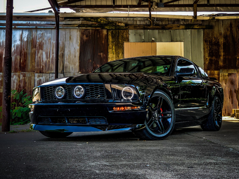Ford Mustang LED Headlights - Raxiom - CCFL Halo Projector - Black Housing/Smoked Lens - `05-`09