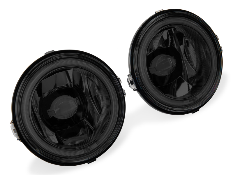 Add a more aggressive look to your Coyote Powered Mustang with a set of Raxiom Smoked CCFL Halo Fog Lights. These Smoked Fog Lights feature an integrated CCFL accent "Halo" ring that adds an intimidating appearance to your GT Mustang. Now you can improve your visibility in dark foggy weather by replacing your old scratched and faded factory fog lights with a brand new set of Raxiom Fog Lights. This set of Raxiom Fog Lights reuse the factory LED bulbs and install in the stock location using the factory wiring harness and mounting brackets. The CCFL Halo Accents include two wires that connect into your factory parking lights. This pair of Mustang Fog Lights are DOT (Department of Transportation) approved for legal street use under compliance # QR1200182.. Raxiom 13-14 Ford Mustang GT CCFL Halo Fog Lights (Smoked). Includes Driver and Passenger Side Fog Lights. DOT Approved Under Compliance# QR1200182. Raxiom CCFL Halo Fog Lights. CCFL Halo Accent Lighting. CCFL Halo Fog Lights. Aggressive Styling. Smoked Lenses. Fog Light. Lights. Smoked