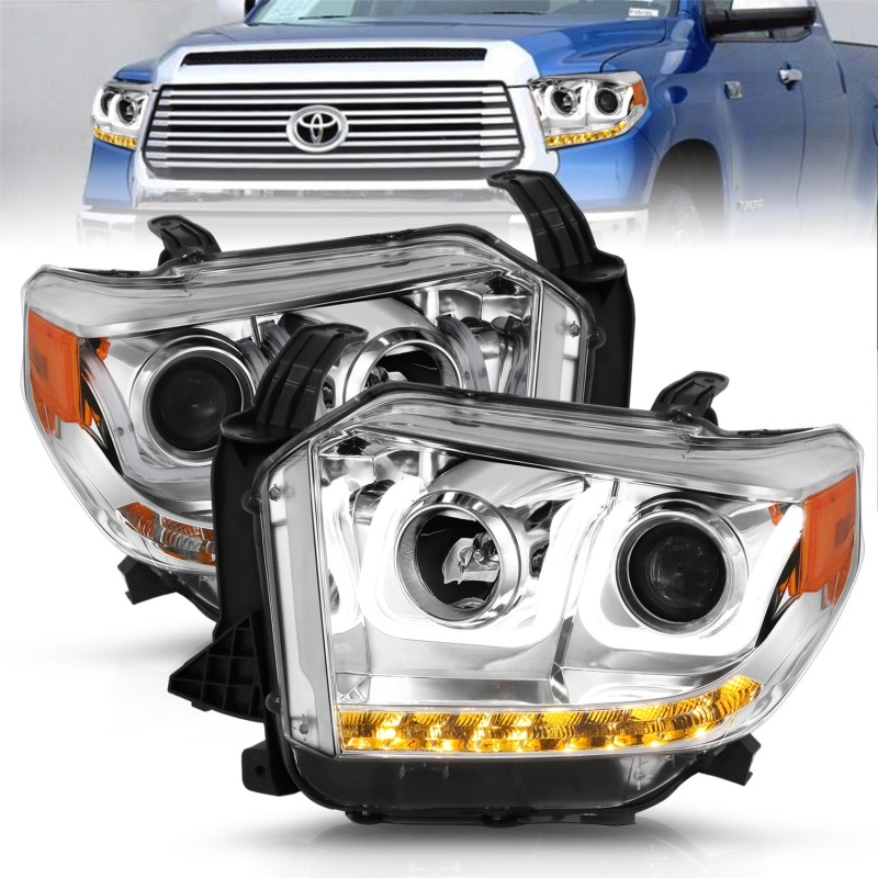 Toyota Tundra Projector Headlights - ANZO - U-Bar with DRL - Chrome - `14-`15