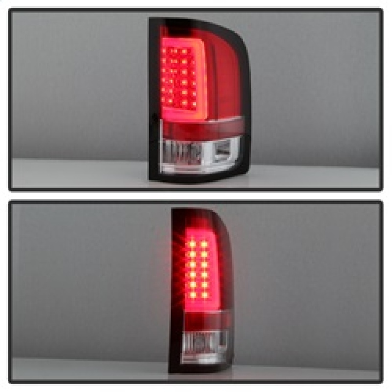 These tail lights greatly enhance the look of your vehicle. Want to have a show car look? Or just something that satisfy your personal taste? Look no further than our high quality tail lights. Our tail lights are made in high quality materials to ensure appearance, durability and fitment.. Spyder 07-13 Silverado (Will Not Work w/2010 921 Bulb) V3 Tail Lights Rd/Clr ALT-YD-CS07V3-LBLED-RC. (Spyder) Light Bar LED Tail Lights - Version 3 - Red Clear. Light Bar LED Tail Lights - Version 3 - Red Clear. Light Bar LED Tail Lights; Version 3; Red Clear;. Improve Looks And Visibility For Vehicle. OEM Approved ISO Certified Manufacturer. Stock Light Direct Replacement. 5084101, Lightbar Tail Lights. Light Bar LED Tail Lights. Lightbar Tail Lights. Tail Light Set