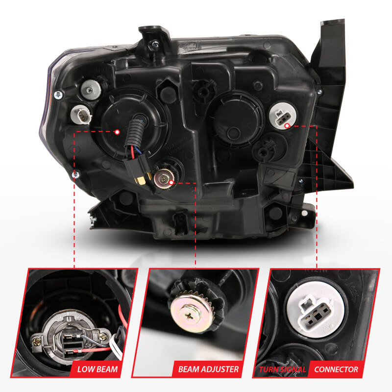 Toyota Tundra Headlight Set - ANZO - Projector w/ Plank Style Switchback - Chrome w/ Amber - `14-`17