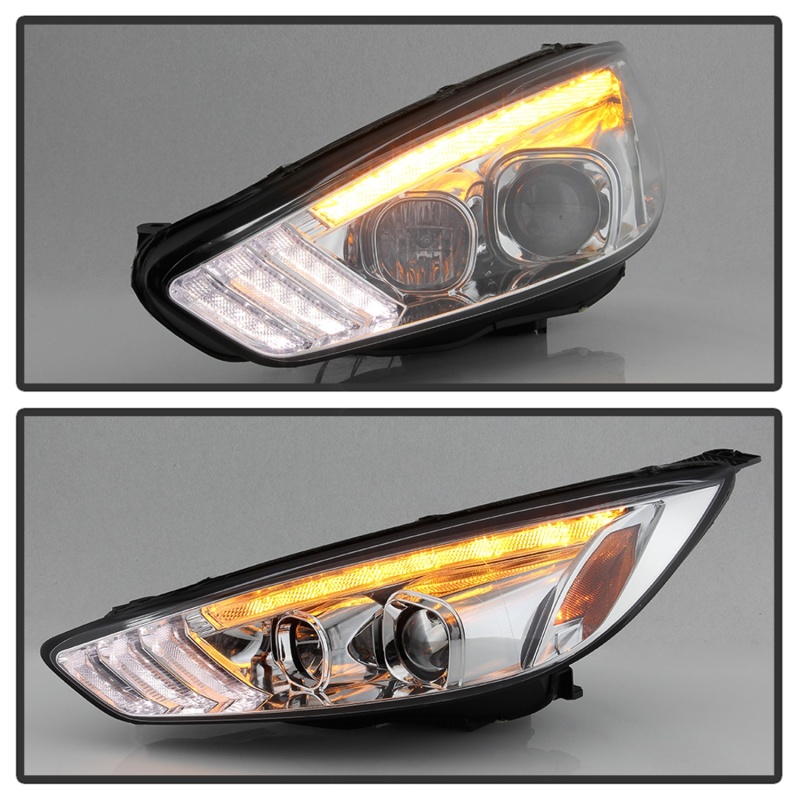Ford Focus Headlight Set - SPYDER - Projector, Sequential Turn Signal, Low Beam-H7/High Beam-H1, Signal-LED - Chrome - `15-`18
