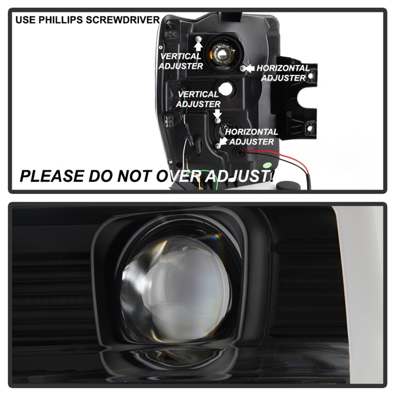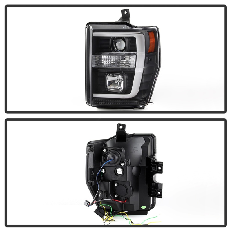 Ford F-250 SD Headlights - SPYDER - Projector Version 2 with Switch Back Light Bar - Black - `08-`10