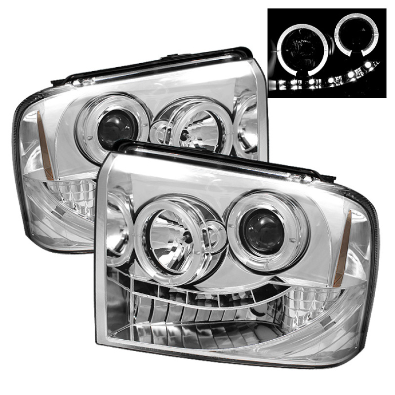 Ford F350 Headlights - SPYDER - Projector LED Halo - Chrome - `05-`07