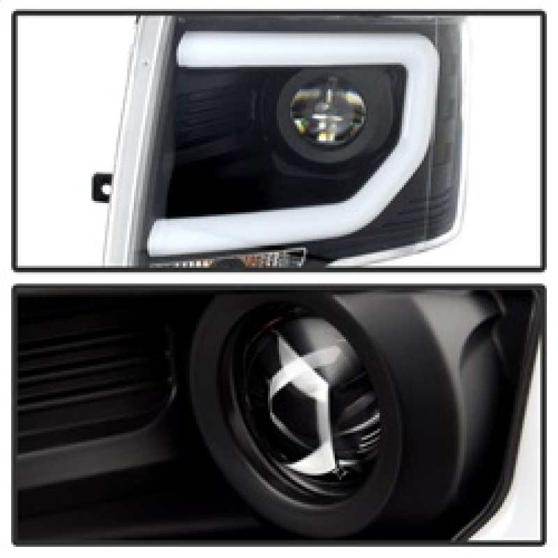 Ford F150 Headlights - SPYDER - Projector + Light Bar DRL - Black - `13-`14