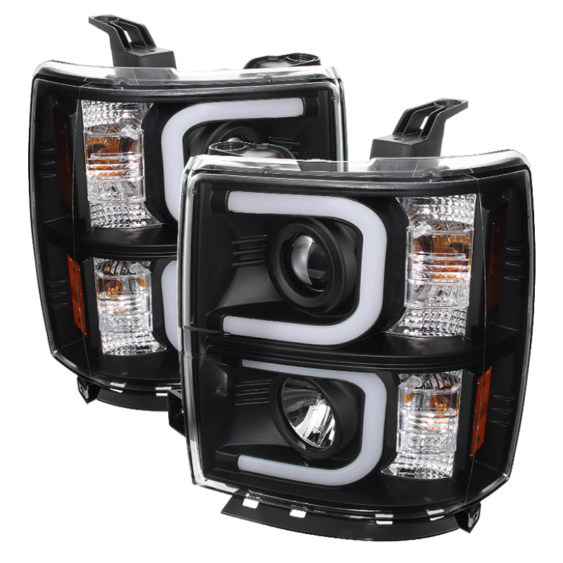 Chevrolet Silverado 1500 Headlight Set - SPYDER - Projector + Light Bar DRL - Black - `14-`16