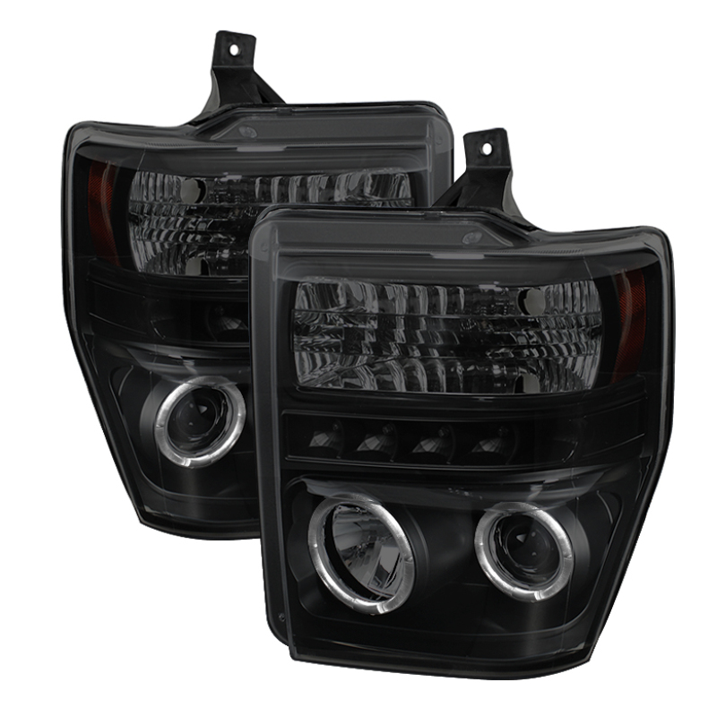Ford F250 Headlights - SPYDER - LED Halo Projector - Black Smoke - `08-`10