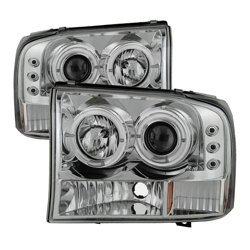 Ford F250 Super Duty Headlights - SPYDER - Version 2 LED Halo Projector - Chrome - `99-`04
