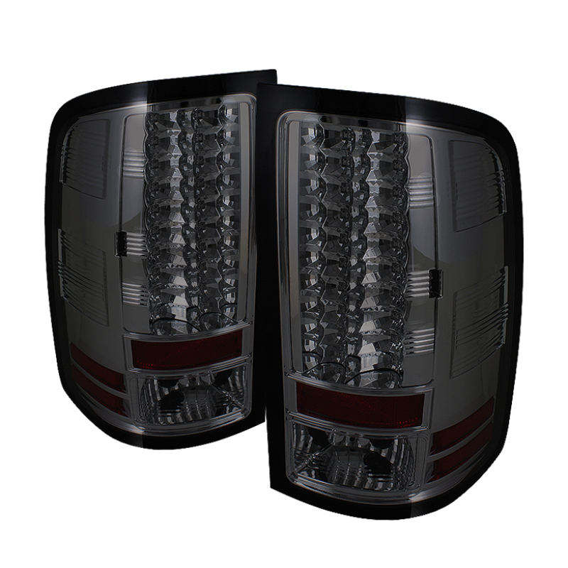These tail lights greatly enhance the look of your vehicle. Want to have a show car look? Or just something that satisfy your personal taste? Look no further than our high quality tail lights. Our tail lights are made in high quality materials to ensure appearance, durability and fitment.. OEM Specific Quality made For Direct Plug-And-Play Fitment. Designed For Use With Aftermarket Or Stock Bulbs. Spyder GMC Sierra 07-13 (Not fit 3500 Dually 4 Rear Wheels)LED Tail Lights Smoke ALT-YD-GS07-LED-SM. Designed For Use With Aftermarket Or Stock Bulbs. LED Tail Lights; Uses Stock Bulbs; Pair; Smoke;. Made For Direct Plug-And-Play Fitment. (Spyder) LED Tail Lights - Smoke. 5014962, LED Tail Lights. LED Tail Lights - Smoke. OEM Specific Quality. LED Tail Lights. Tail Light Set