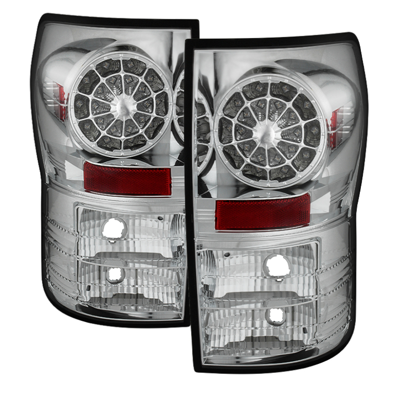These tail lights greatly enhance the look of your vehicle. Want to have a show car look? Or just something that satisfy your personal taste? Look no further than our high quality tail lights. Our tail lights are made in high quality materials to ensure appearance, durability and fitment.. OEM Specific Quality made For Direct Plug-And-Play Fitment. Designed For Use With Aftermarket Or Stock Bulbs. Spyder Toyota Tundra 07-13 LED Tail lights Chrome ALT-YD-TTU07-LED-C. LED Tail Lights; Uses Stock Bulbs; Pair; Chrome;. Designed For Use With Aftermarket Or Stock Bulbs. Made For Direct Plug-And-Play Fitment. (Spyder) LED Tail Lights - Chrome. LED Tail lights - Chrome. 5029591, LED Tail Lights. OEM Specific Quality. LED Tail Lights. Tail Light Set