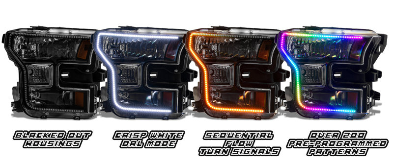 Ford F-150 Headlight Assemblies - ORACLE Lighting - Dynamic RGB+A, Black Edition - Black - `15-`17