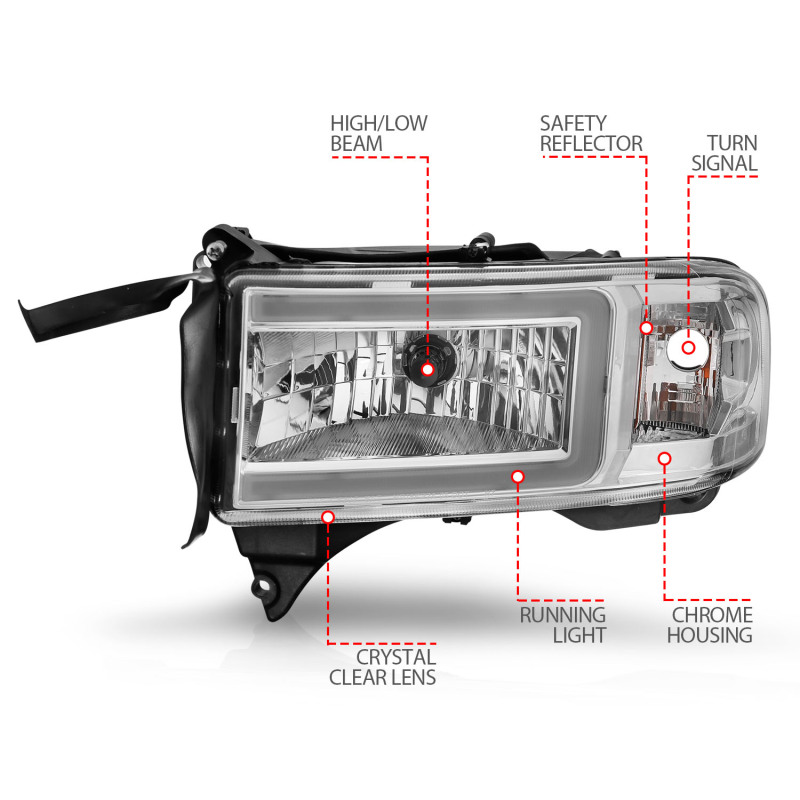 Dodge RAM Headlights - ANZO - Crystal w/ Light Bar - Chrome - `94-`02