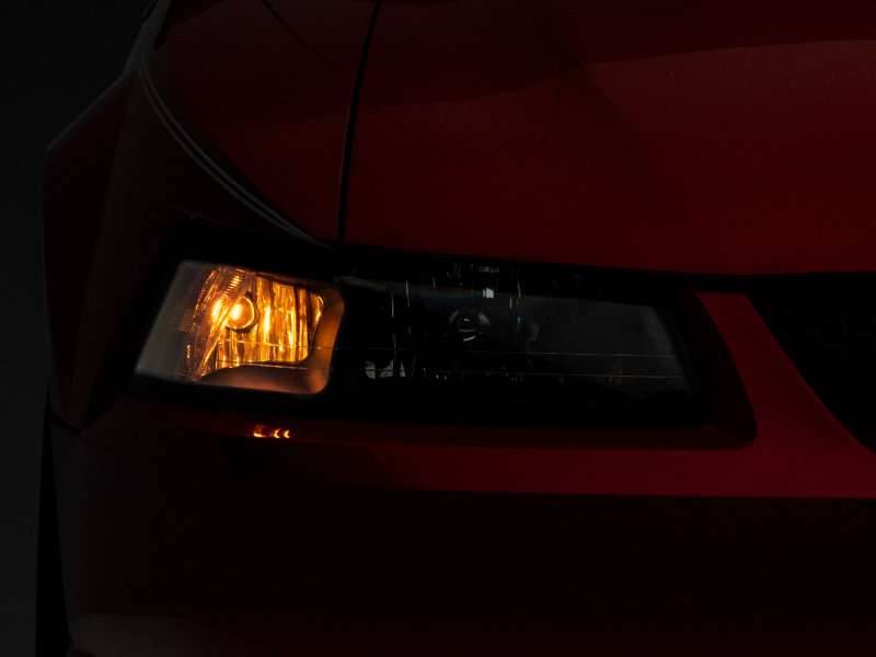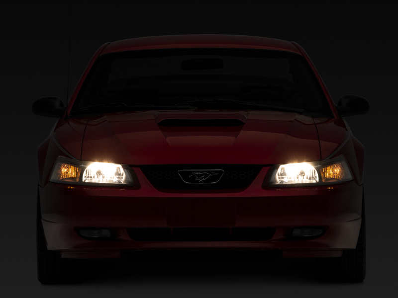 Improve the appearance and nighttime driving visibility of your Mustang just by replacing your old weathered, worn out, and yellowing factory headlights with a brand new pair of Axial OEM Style Headlights that feature Clear Lenses and Amber Corners. These Headlights feature a clean OE style design that will give your Mustang a fresh new look. Manufactured from OEM grade materials, these Headlights are assembled to precise standards for long-lasting quality. These Headlights feature durable, black abs plastic housings with multi-faceted chromed reflectors and clear polycarbonate lenses. Each light is weather-sealed to prevent dirt and moisture from harming the state of the art electronics. These Headlights will not only bring a fresh new look to your Mustang, but they also meet or exceed the strict guidelines set forth by the U.S. Department of Transportation (DOT) and the Society of Automotive Engineers (SAE), making them legal for street use. These Headlights were designed to be a direct plug and play replacement for your Mustang's original factory housings. Please be sure to have your headlights properly aimed/aligned before driving at night.. Raxiom 99-04 Mustang Axial Series OEM Style Replacement Headlights- Black Housing (Clear Lens). Raxiom Axial Series OEM Style Replacement Headlights. Axial Series OEM Style Replacement Headlights. Multi-faceted Chrome Reflector. One-Piece OE Style Headlights. Clear Polycarbonate Lenses. Black ABS Plastic Housings. Amber Corner Reflectors. DOT and SAE Compliant. OEM Style Headlights. Reuses Stock Bulbs. Black Housing. Headlights. Clear Lens. Headlight