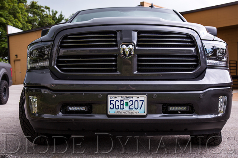 FeaturesCompatible with Dodge Ram 2013-2018.Street-legal output as Driving or Fog lights (Please check your local laws and regulations for aiming installation and applicability).Dual output wiring harness included. Highly durable powdercoated steel construction.Utilizes existing mounting points and hardware for a simple installation.CAD-designed for perfect fitment.OverviewPerfect Fitment. The LED Driving Light Kit compatible with the Dodge Ram 2013-2018 from Diode Dynamics allows you to mount a pair of SS6 Stage Series 6in Light Bars in the bumper openings. These application-specific brackets were CAD-designed to install using factory mounting points. No cutting or drilling required!Street Legal Output. This kit isn't just for off road! It is legal for on-road use as driving or fog lights (Please check your local laws and regulations for aiming installation and applicability). The Driving pattern was designed to supplement your high beams. Rather than a simple "spot" pattern the Stage Series Driving pattern has a rectangular 20Wx8H degree pattern that is far more useful for directing light downrange at high speeds.Designed For Performance. Using optical simulation modeling Diode Dynamics Stage Series light bars have been designed for maximum functionality with compact size custom-engineered TIR optics and a useful beam pattern all in a highly durable package. Our light bars shine light in a highly-functional and useful beam pattern much more focused than older LEDs on the market.. FeaturesCompatible with Dodge Ram 2013-2018.Street-legal output as Driving or Fog lights (Please check your local laws and regulations for aiming installation and applicability).Dual output wiring harness included. Highly durable powdercoated steel construction.Utilizes existing mounting points and hardware for a simple installation.CAD-designed for perfect fitment.OverviewPerfect Fitment. The LED Driving Light Kit compatible with the Dodge Ram 2013-2018 from Diode Dynamics allows you to mount a pair of SS6 Stage Series 6in Light Bars in the bumper openings. These application-specific brackets were CAD-designed to install using factory mounting points. No cutting or drilling required!Street Legal Output. This kit isn't just for off road! It is legal for on-road use as driving or fog lights (Please check your local laws and regulations for aiming installation and applicability). The Driving pattern was designed to supplement your high beams. Rather than a simple spot" pattern the Stage Series Driving pattern has a rectangular 20Wx8H degree pattern that is far more useful for directing light downrange at high speeds.Designed For Performance. Using optical simulation modeling Diode Dynamics Stage Series light bars have been designed for maximum functionality with compact size custom-engineered TIR optics and a useful beam pattern all in a highly durable package. Our light bars shine light in a highly-functional and useful beam pattern much more focused than older LEDs on the market.". Included in the box: Two (2) Application-specific heavy-duty steel brackets for installation on 2013-2018 Ram Standard Two (2) SS6 Stage Series 6" Light Bars One (1) Dual Output Harness with toggle switch All Necessary Hardware Installation Guide . Included in the box: Two (2) Application-specific heavy-duty steel brackets for installation on 2013-2018 Ram Standard. Two (2) SS6 Stage Series 6" Light Bars. One (1) Dual Output Harness with toggle switch. All Necessary Hardware. Installation Guide.. The LED Driving Light Kit compatible with the Dodge Ram 2013-2018 from Diode Dynamics allows you to mount a pair of SS6 Stage Series 6in Light Bars in the bumper openings.. Light bar featuring advanced TIR optics for high efficiency and focus.. Diode Dynamics Ram 2013 Standard Stage Series 6 In Kit - White Wide. High-intensity automotive-type LEDs with pure white color. Advanced TIR optics provide high efficiency and focus. Slim 42mm housing for low-profile fitment. Durable matte powdercoated extrusion. Diode Dynamics - DD6013. Diode Dynamics Offroad. Driving Light Kit